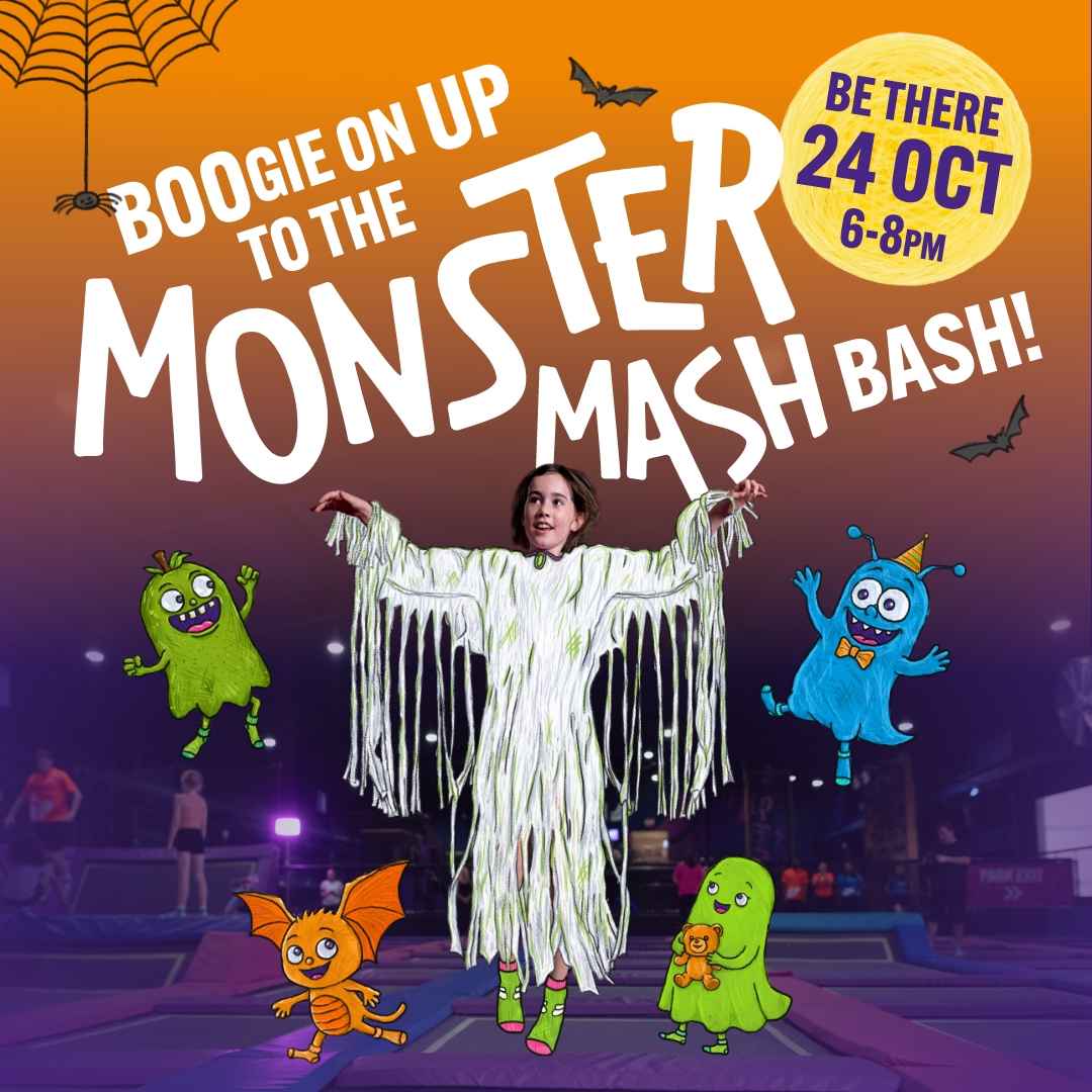 Ready to bounce, boogie, and get spooky? Join us for the Monster Mash Bash on October 24th, the ultimate Halloween party for kids who love to play! Enjoy 2 hours of thrilling open-play, creepy games, fang-tastic music, and prizes for the best-dressed ghouls and goblins. Each ticket includes a hot dog and unlimited squash to keep the energy high. Don’t be a couch potato, do the Monster Mash instead! Costumes encouraged. Screams guaranteed. It’s going to be a fright night to remember!